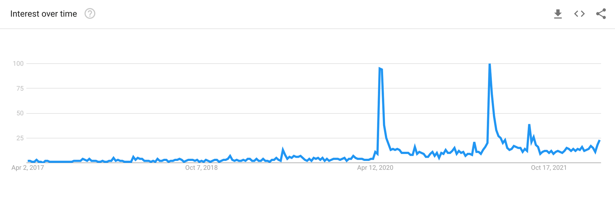 Looking at Google Trends, we can see the Joe Rogan effect. Each spike corresponds with Carr's two appearances on the JRE: the first was in April 2020 and the second was a year later in April 2021.