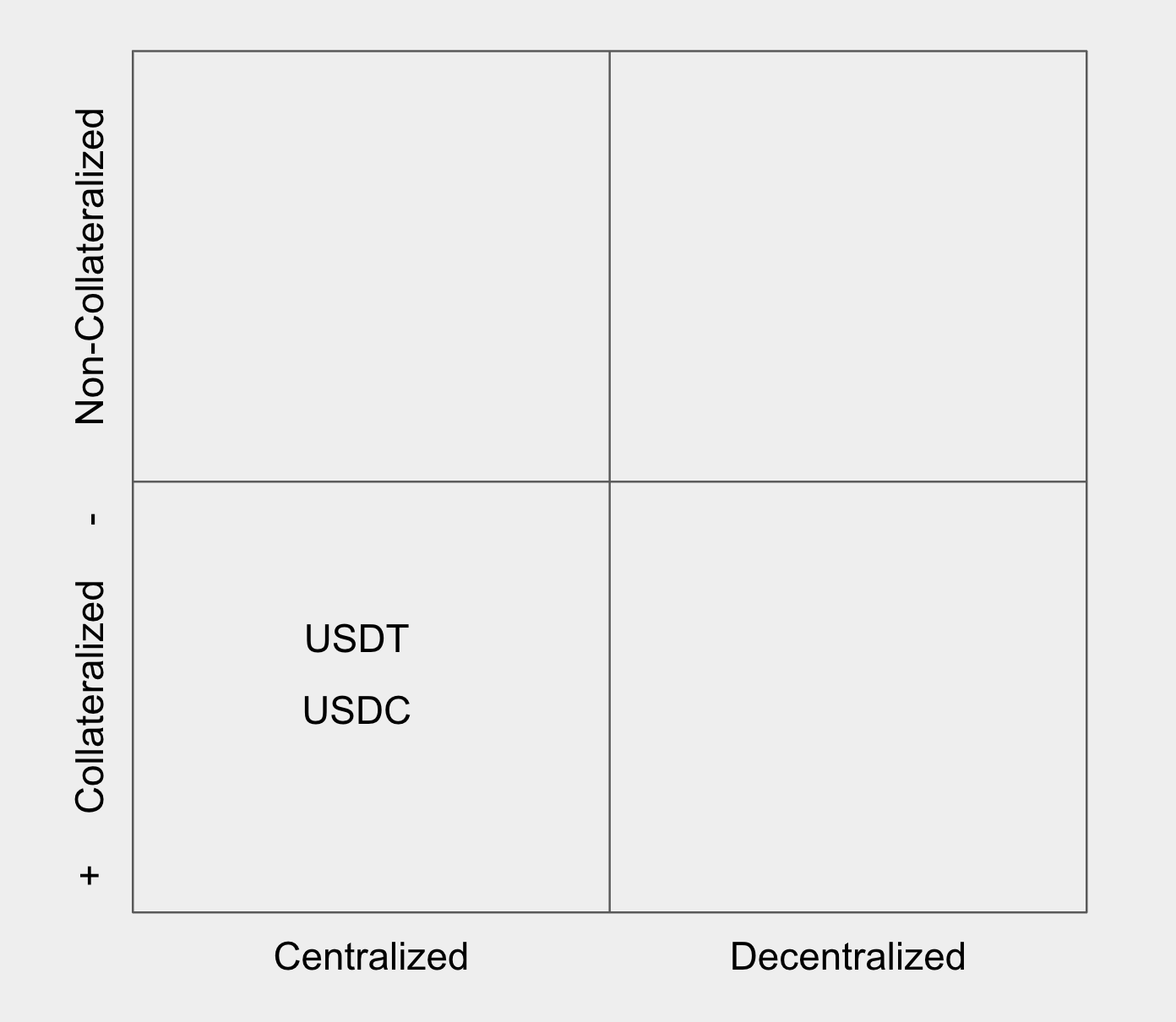 The simplest way of reasoning about a stablecoin is to understand the design decisions around centralization and collateralization.